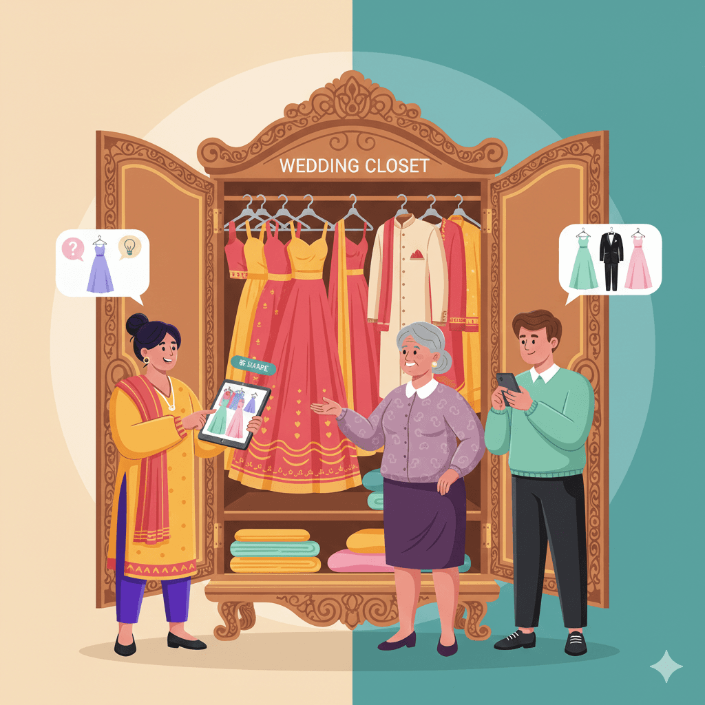 Family members strongly influence selections, making collaborative features such as shareable wedding closets essential.